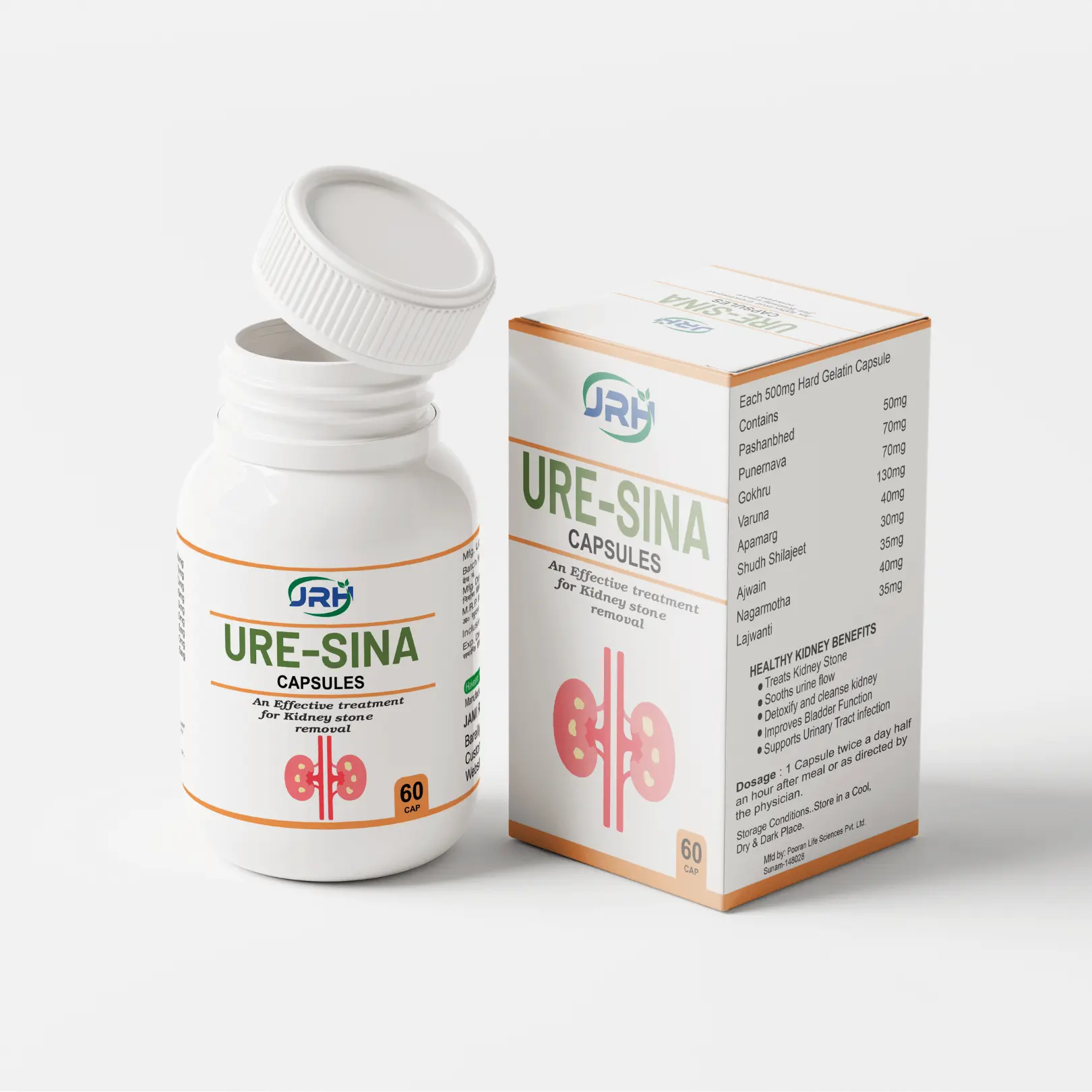 JRH URE-SINA CAPSULES harness the power of time-tested Ayurvedic herbs, each carefully selected for its unique properties in supporting kidney and urinary tract health. Our potent formula ensures maximum efficacy and natural relief.